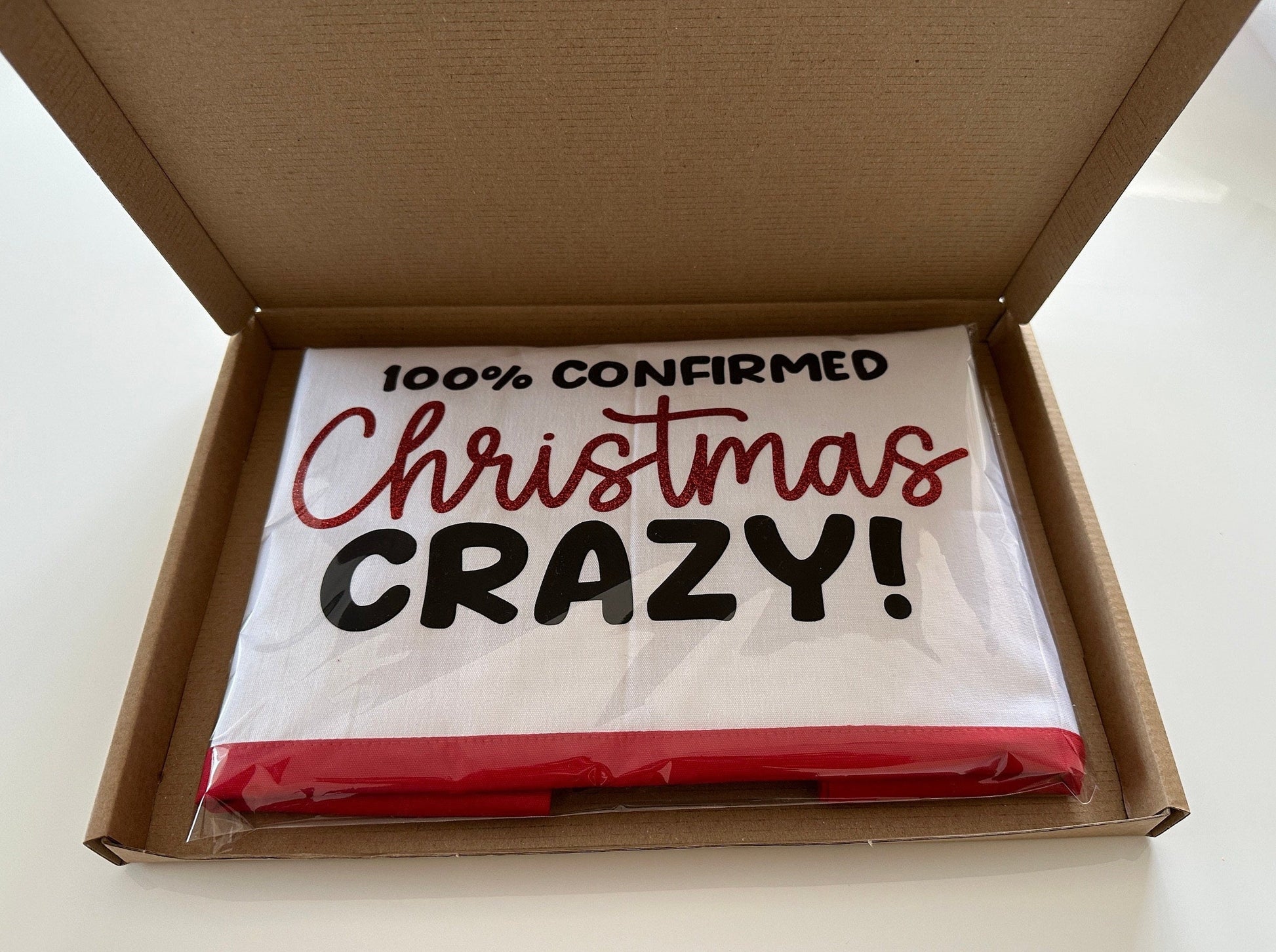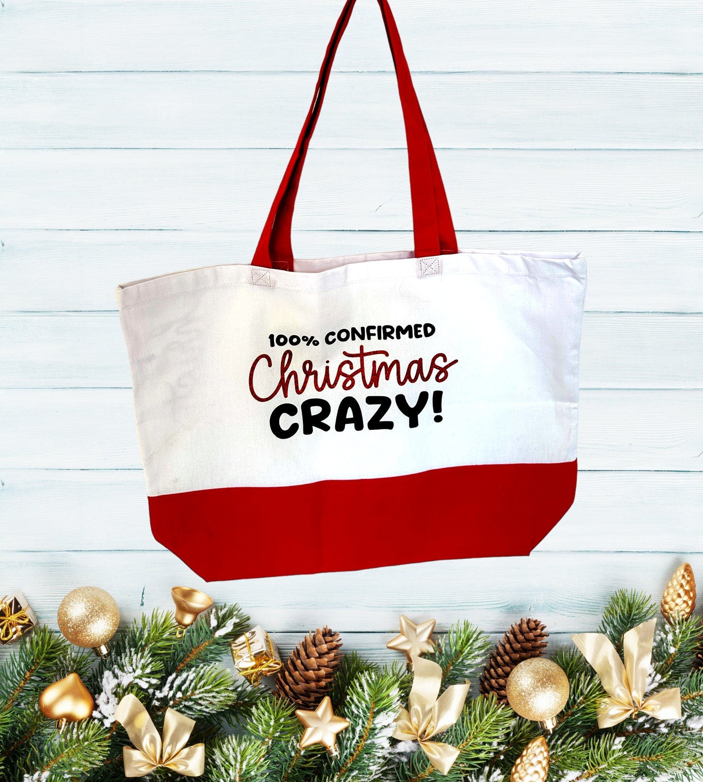 Tell everyone just how much you love Christmas with this two tone red and white '100% confirmed Christmas Crazy!' shopping tote bag.