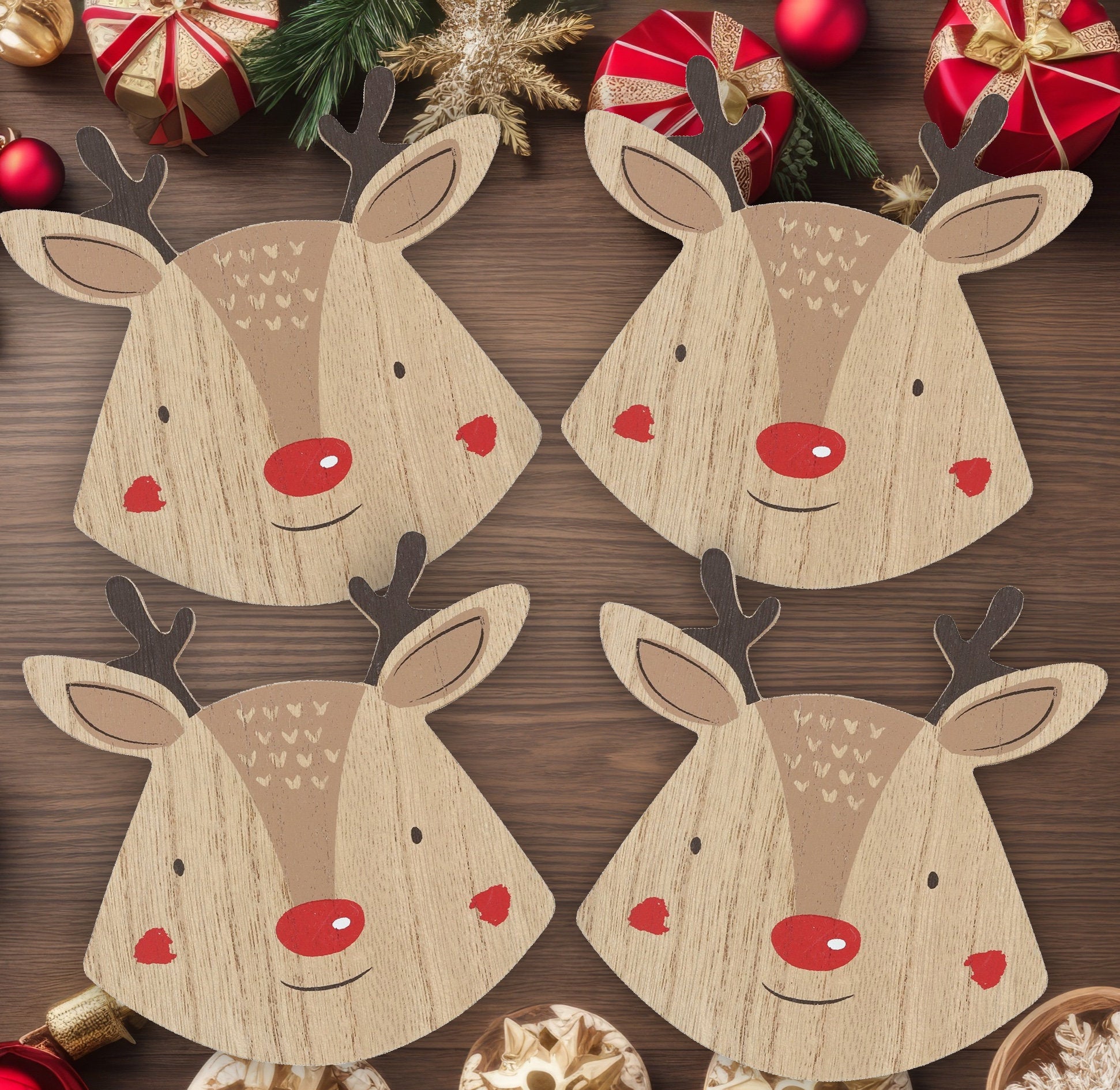 Christmas Reindeer Coaster Set | Xmas Festive Coffee Tea Coasters Rudolph Santa