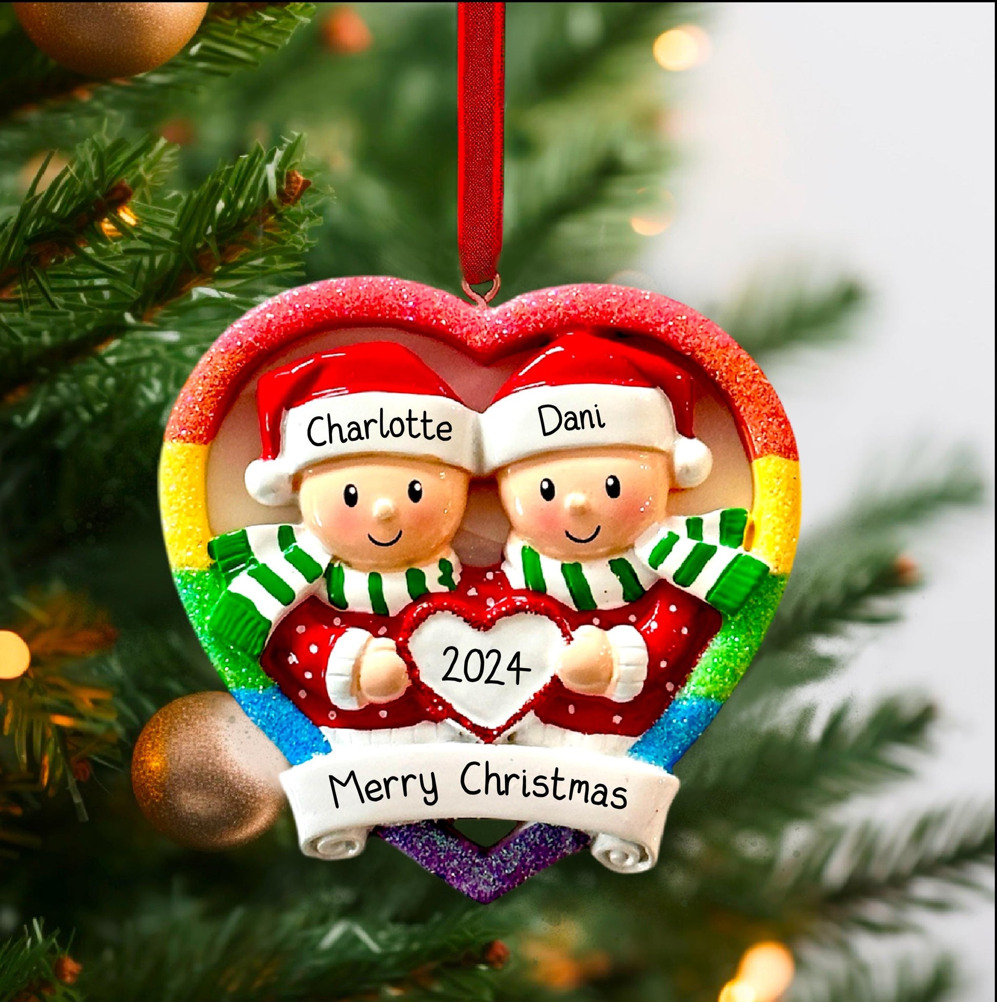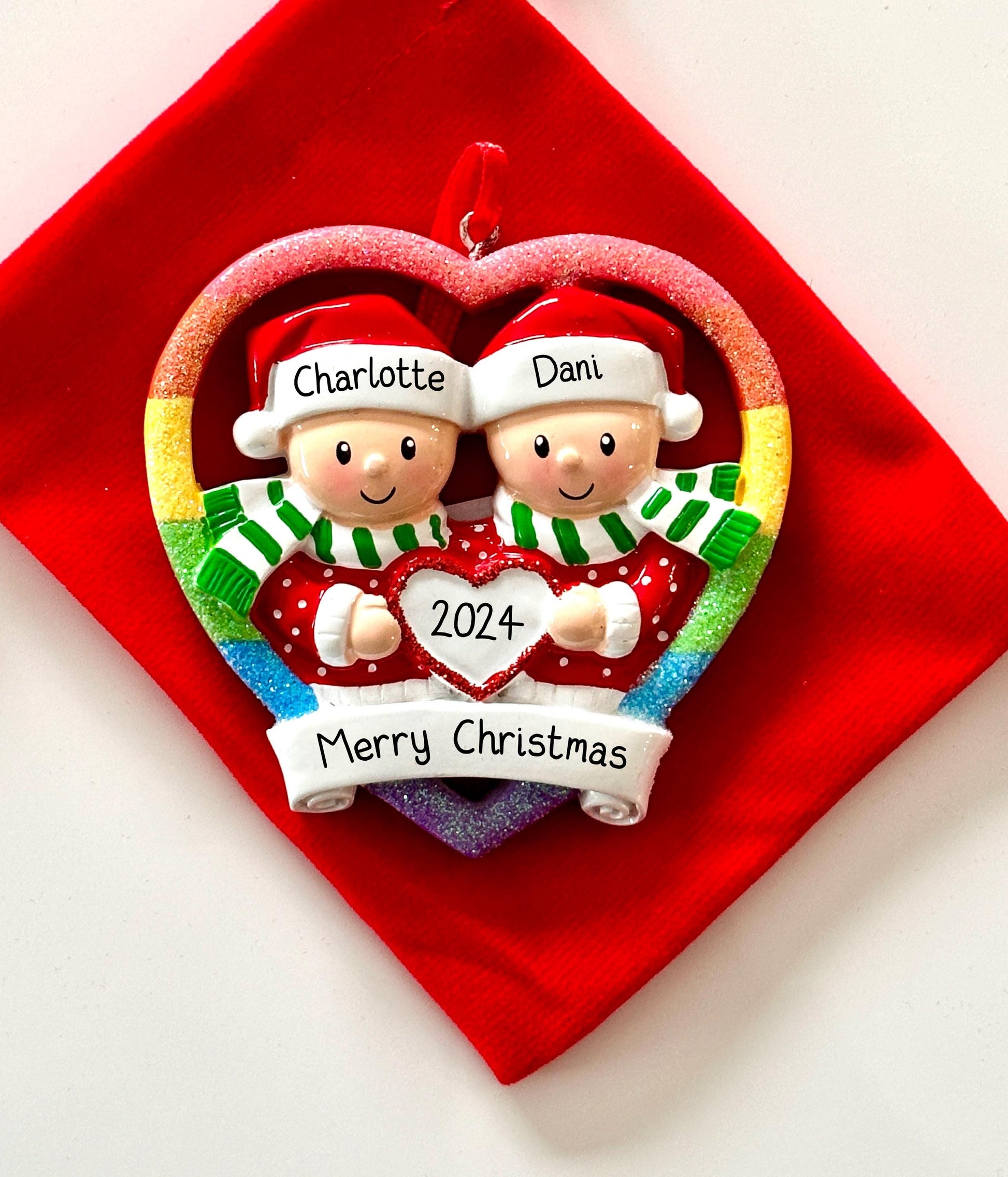 ๐ Gorgeous Personalised (or Non-Personalised) Gay Couple Christmas Tree Ornament ๐