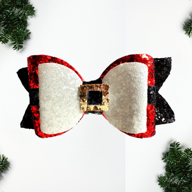 Clip on Sparkly Christmas Santa Shoe Bows (Santa Belt)