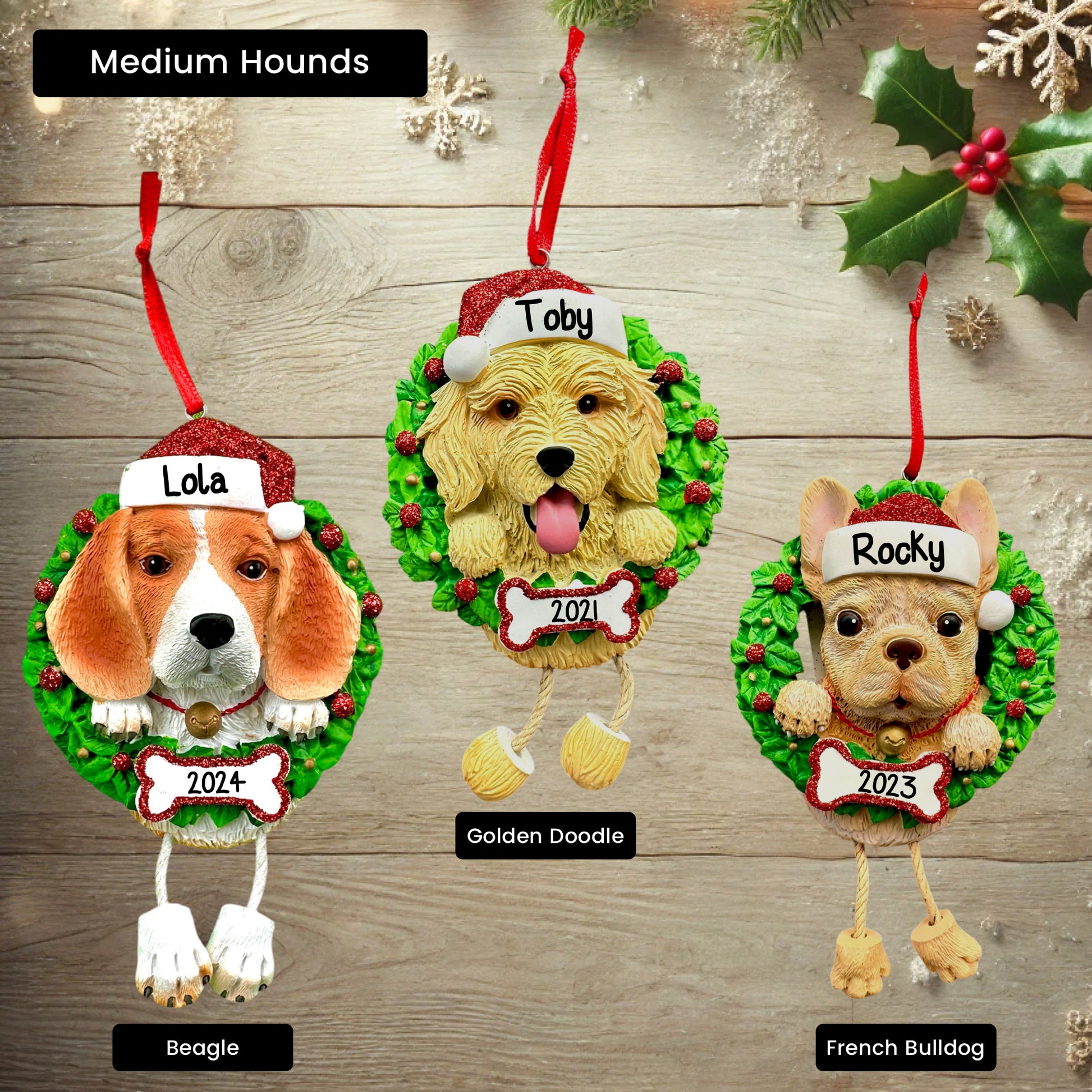 These unique dog breed baubles are crafted with β€οΈ and designed to bring holiday cheer π π to pet lovers. Each ornament can be customized with your π dogβs name and the ποΈ year on the bone 𦴠at the bottom, making it a memorable keepsake for years to come. ππΎ