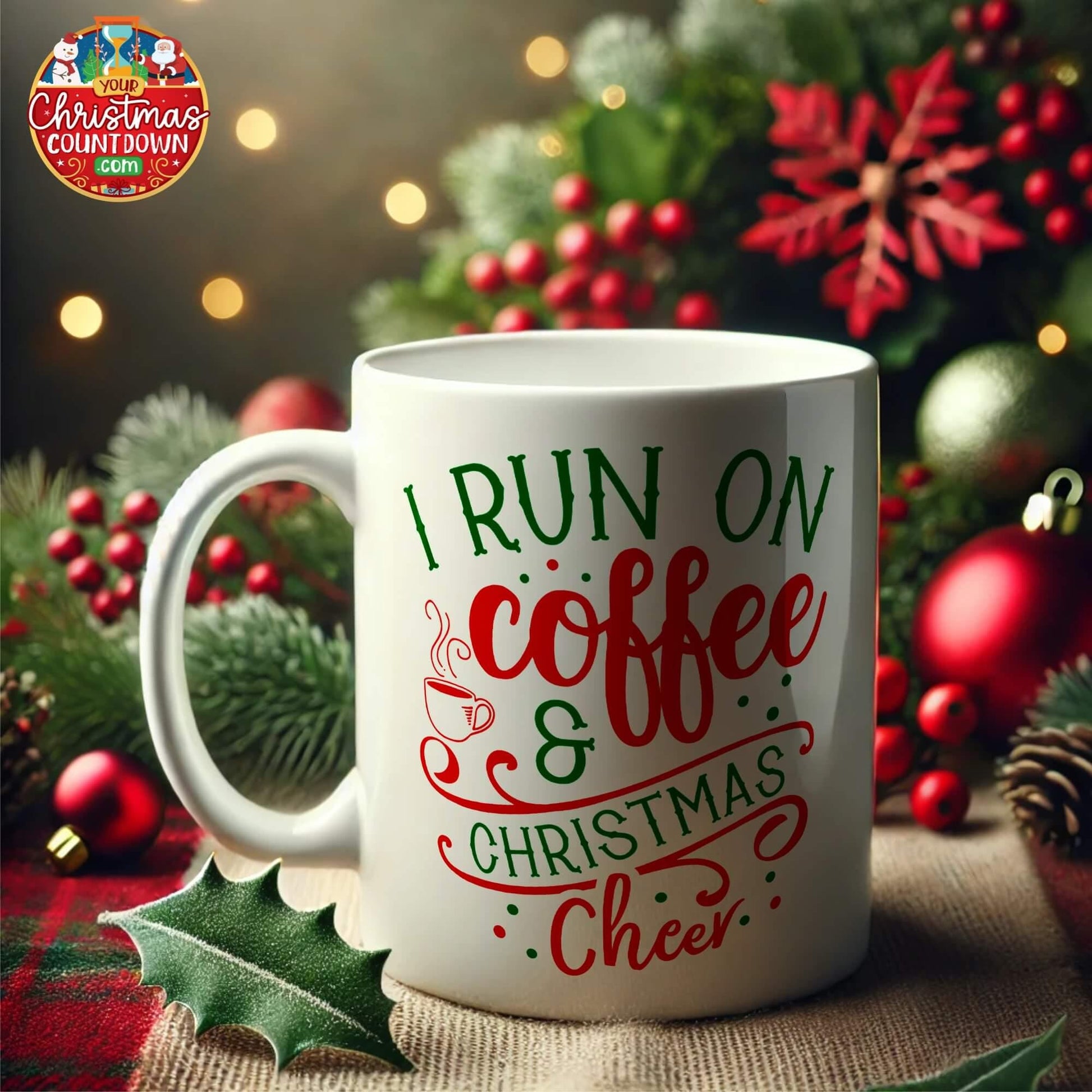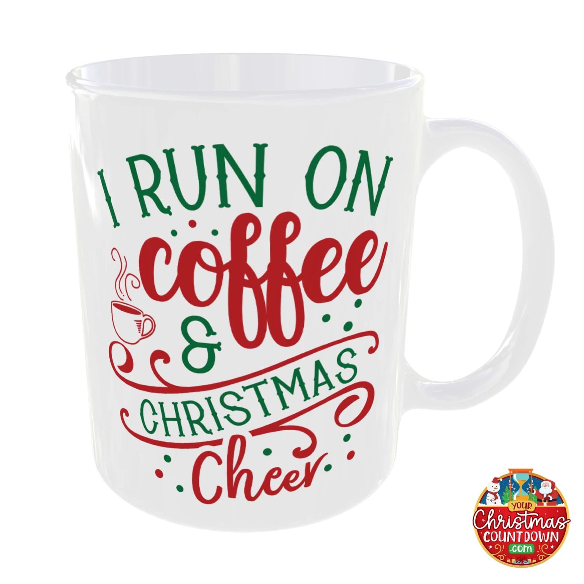 I Run On Coffee & Christmas Cheer Mug - Festive Xmas Coffee Mugs - Office Secret Santa Gift