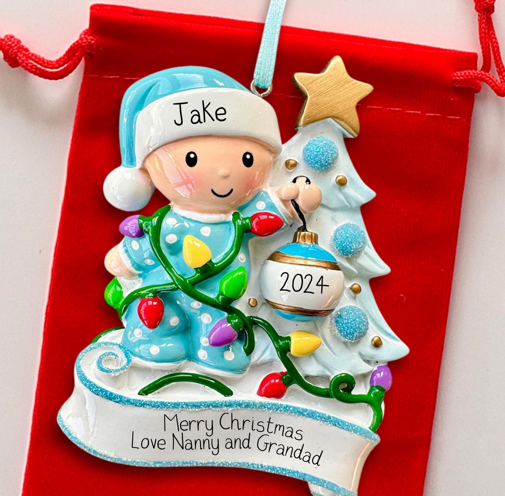 Personalised Baby’s First Christmas Tree Ornament - Blue