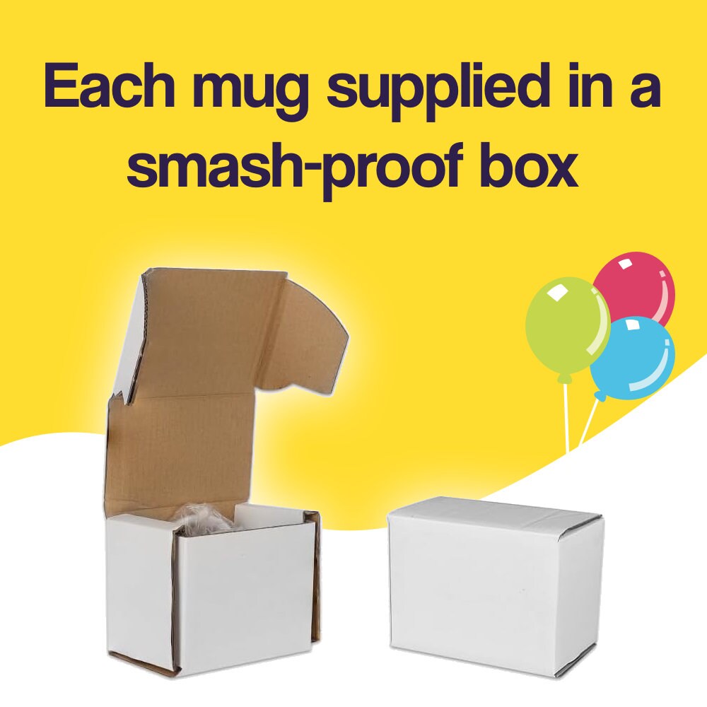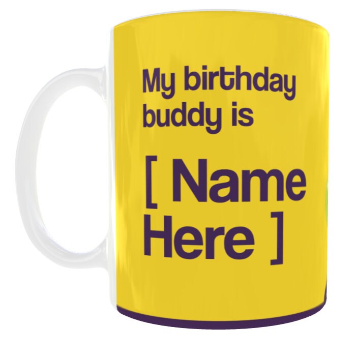 Tell someone who their birthday buddy is with these bright novelty mugs. Ideal for birthday presents.