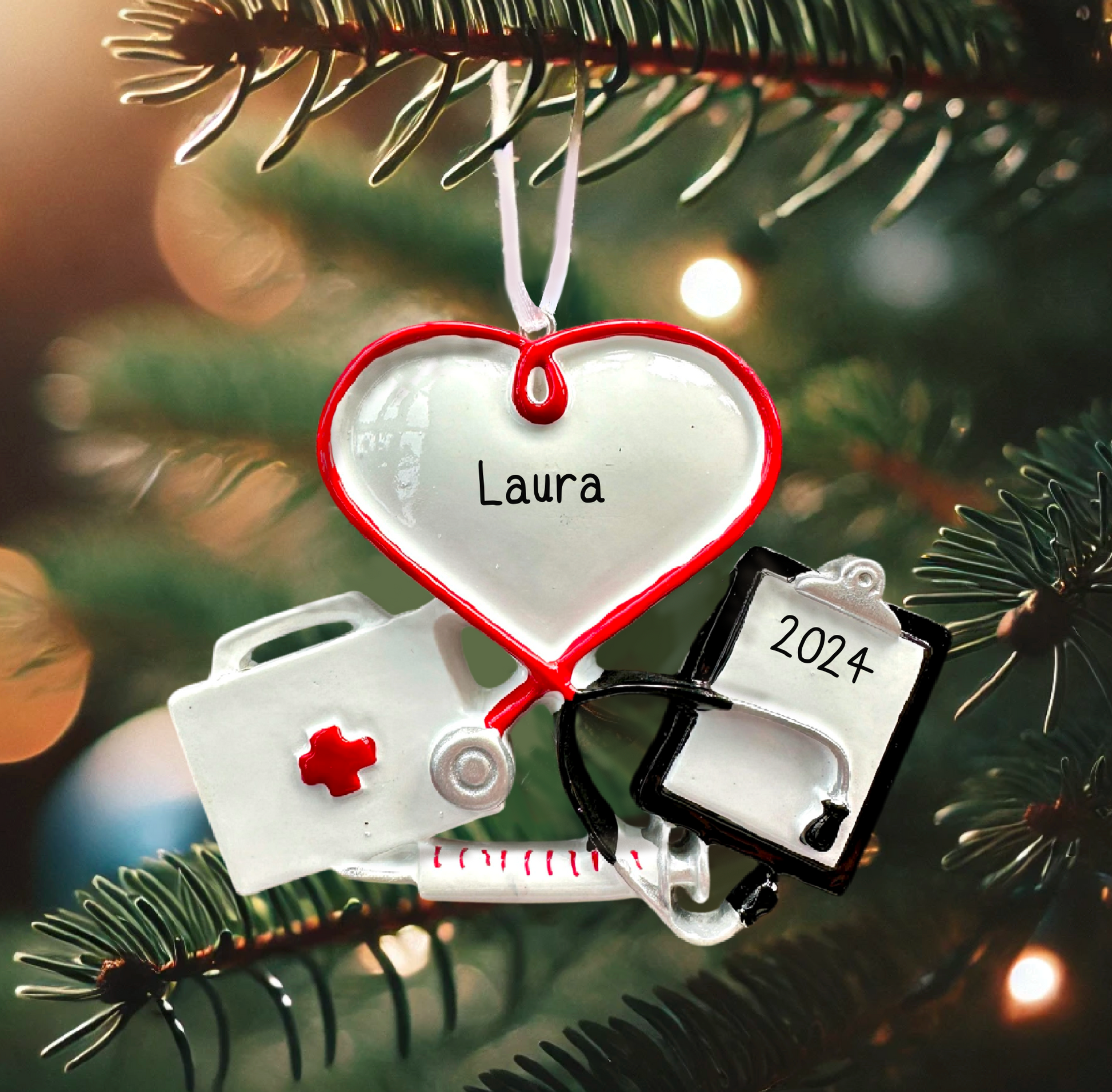 Celebrate the dedication and hard work of healthcare heroes with a personalised ornament that honours their contribution and adds a festive touch to their holiday dรฉcor! ๐ฉบโจ