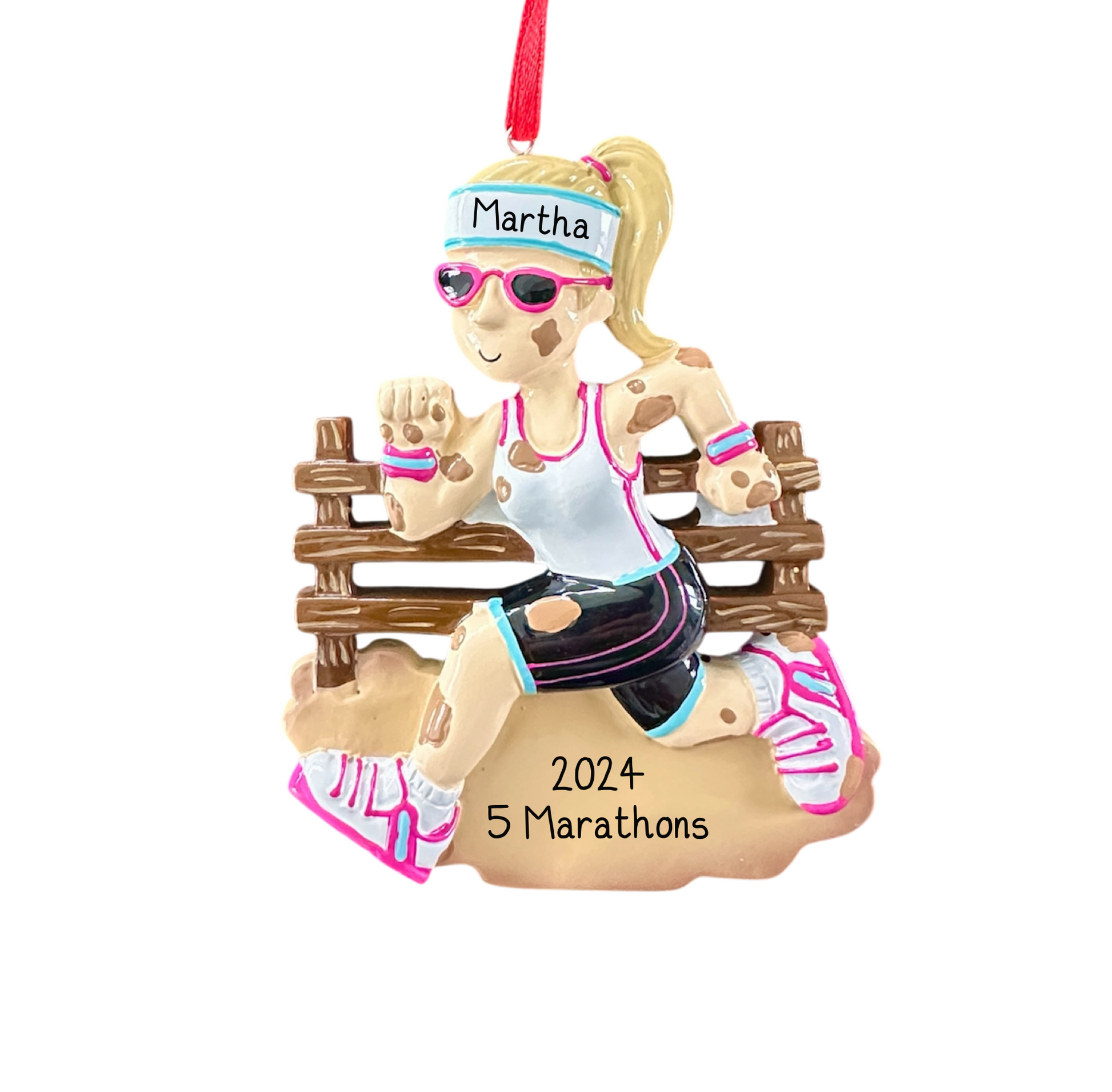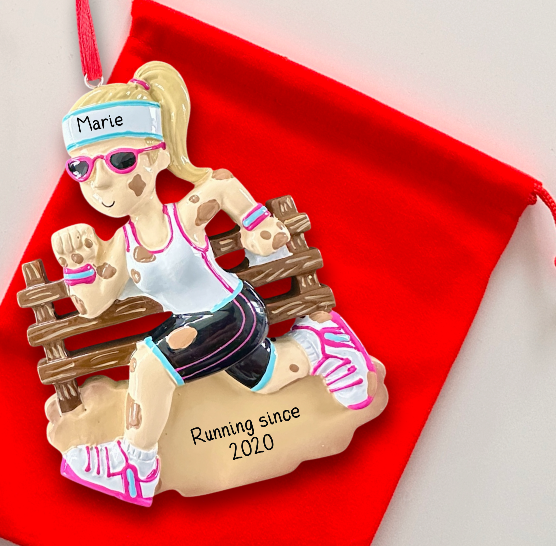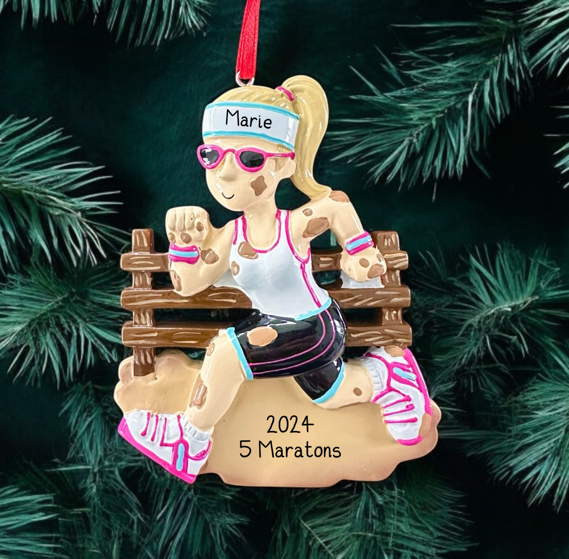 Personalised Muddy Runner Ornament - Gift for Runners - Unique Christmas Tree Decoration - Hand-Personalised Female