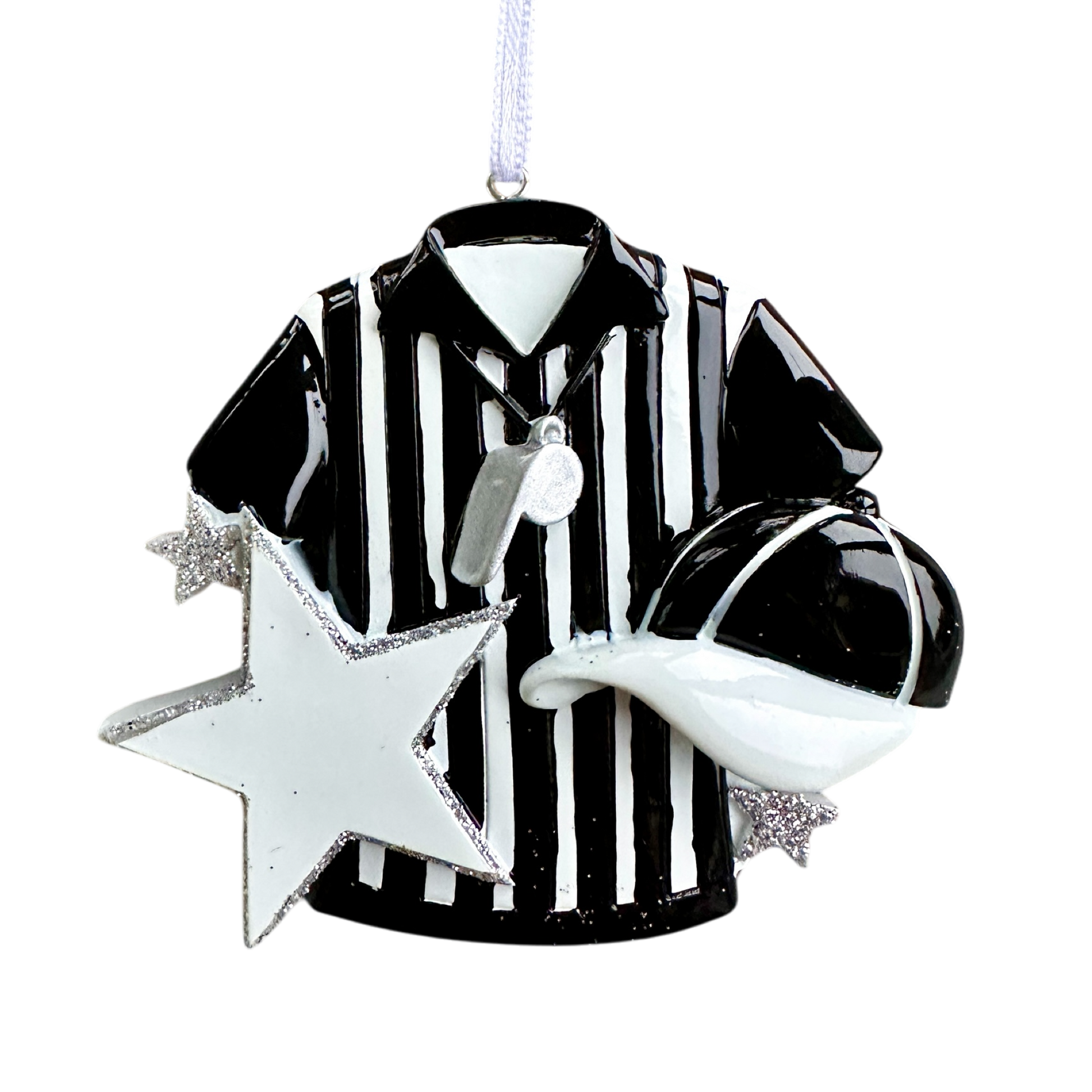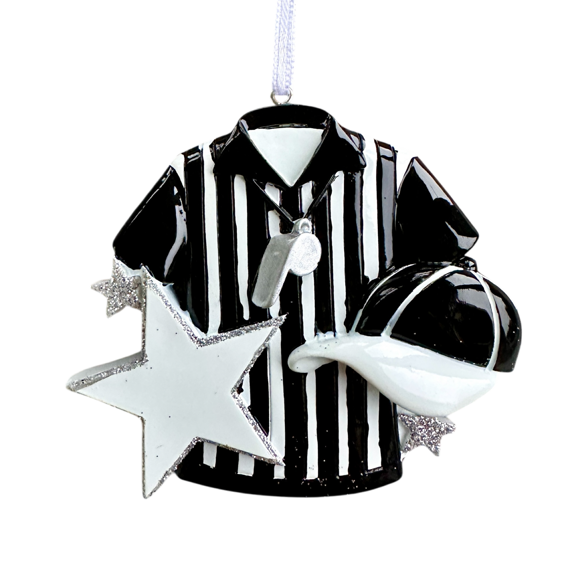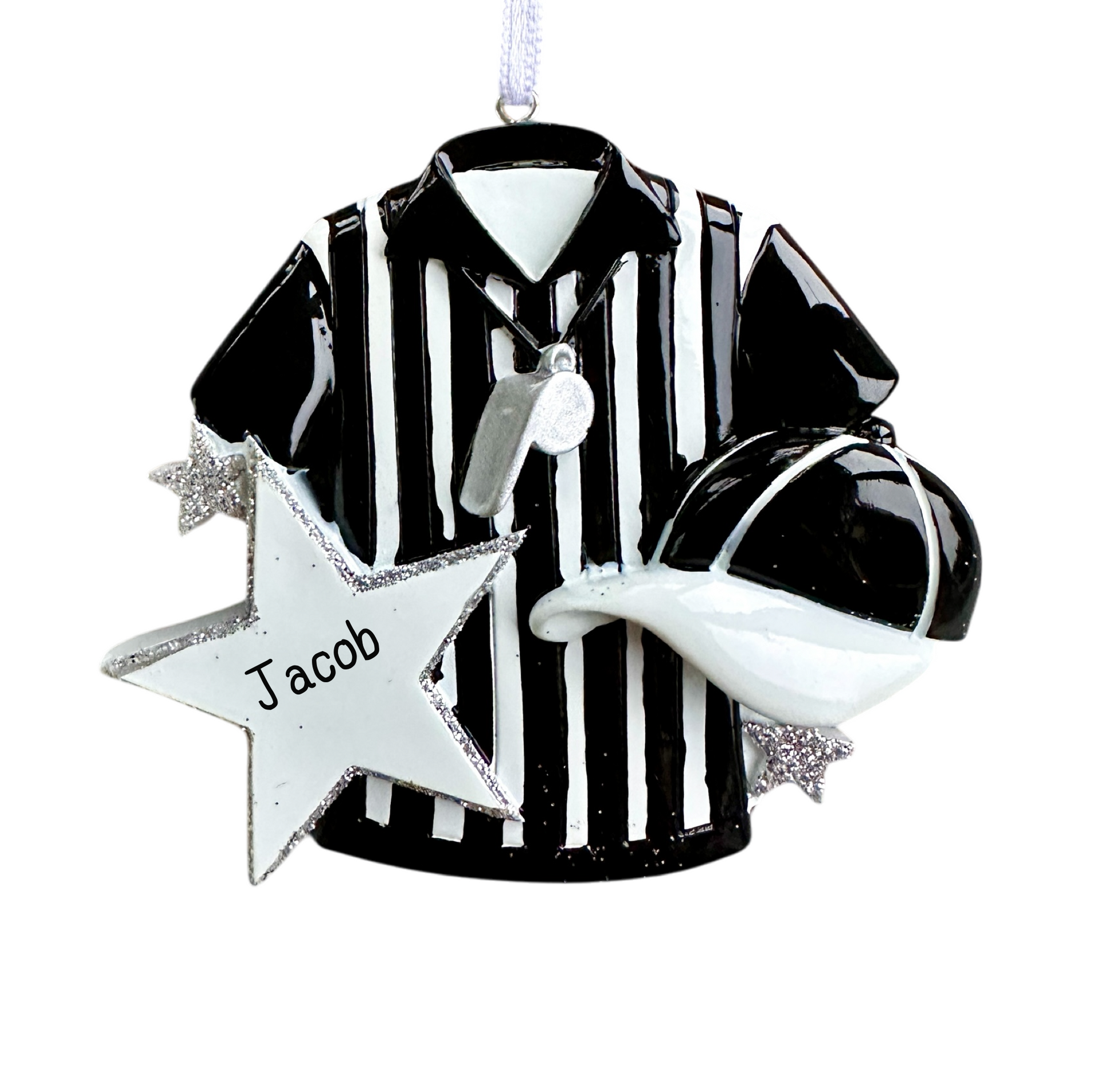 Personalised Referee Bauble - Custom Christmas Ornament - Sparkly Silver Star - Hand-Personalised with Name or Year ⚽✨