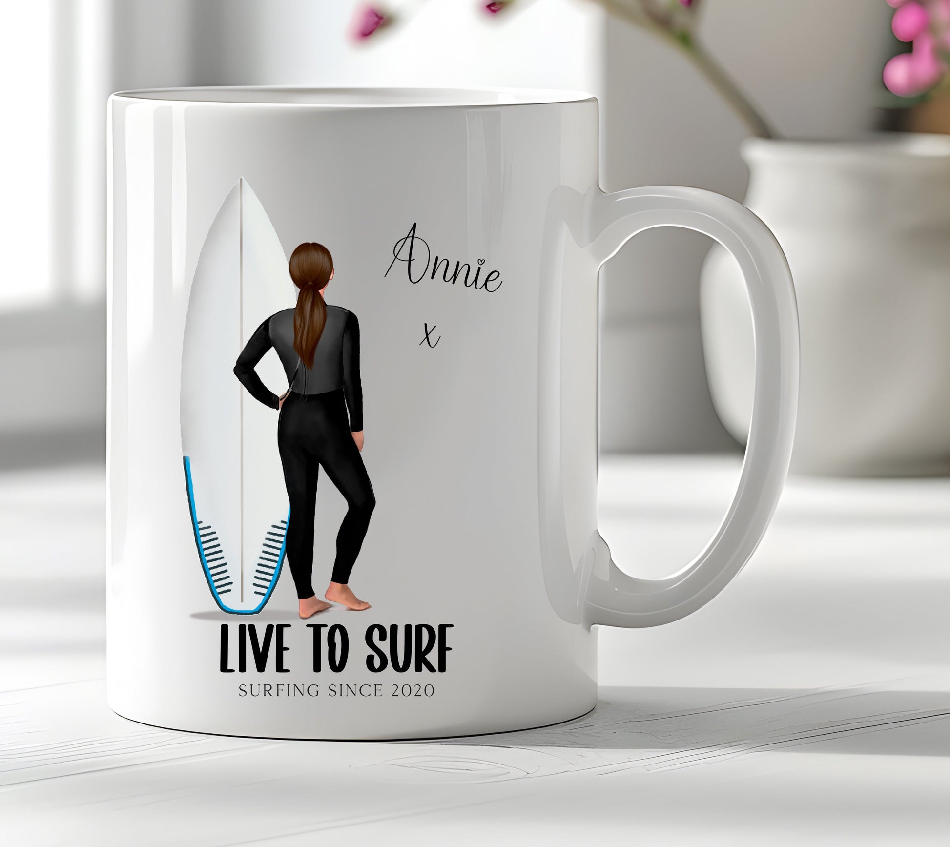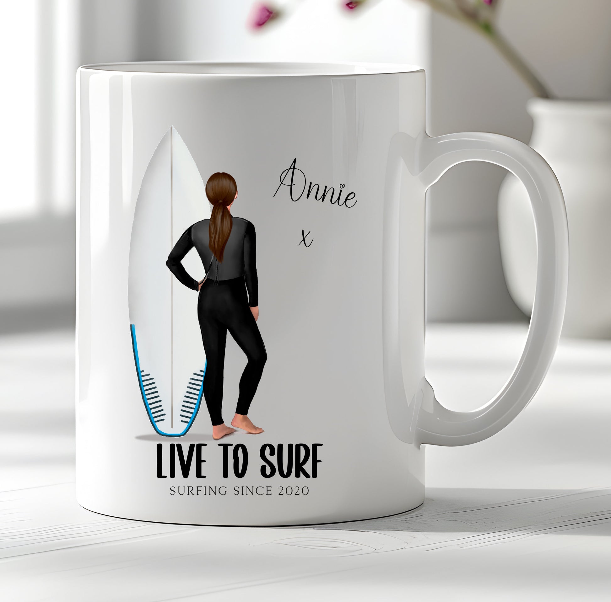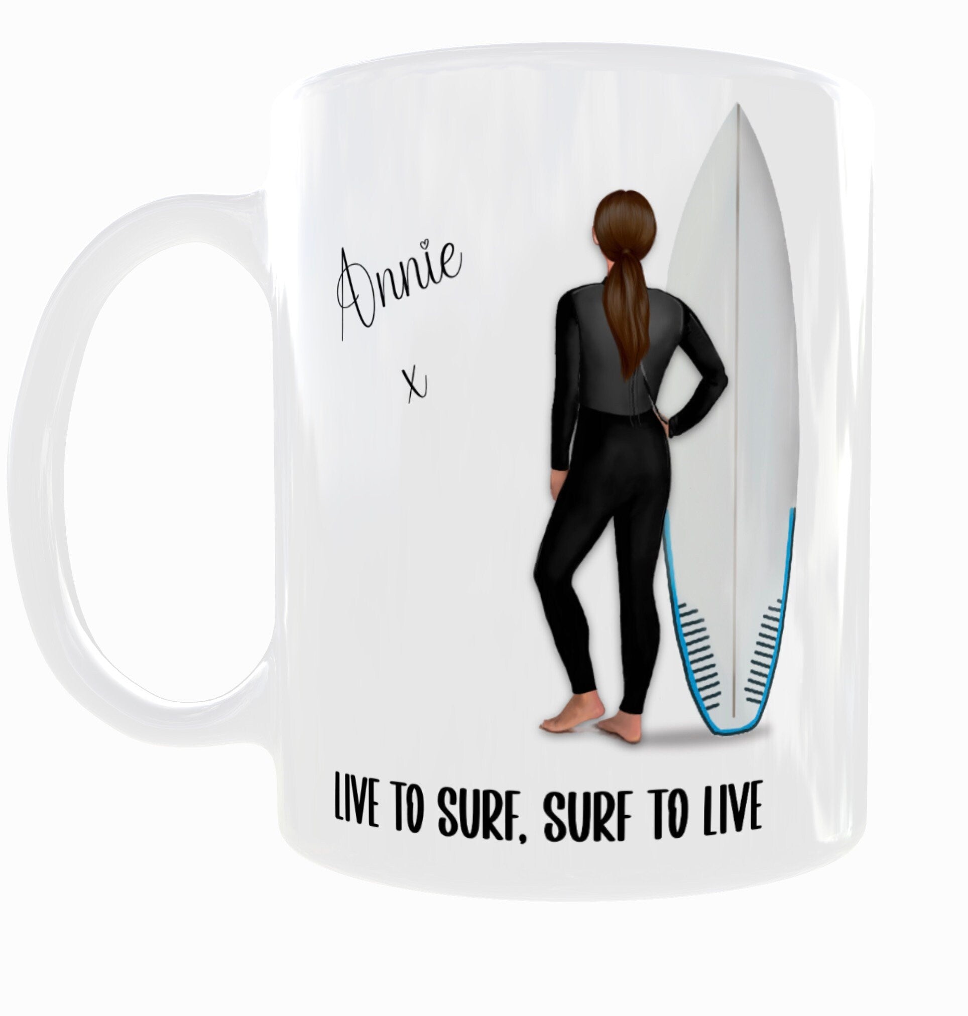 Select your hair colour and hairstyle to create your very own personalised surfer mug
