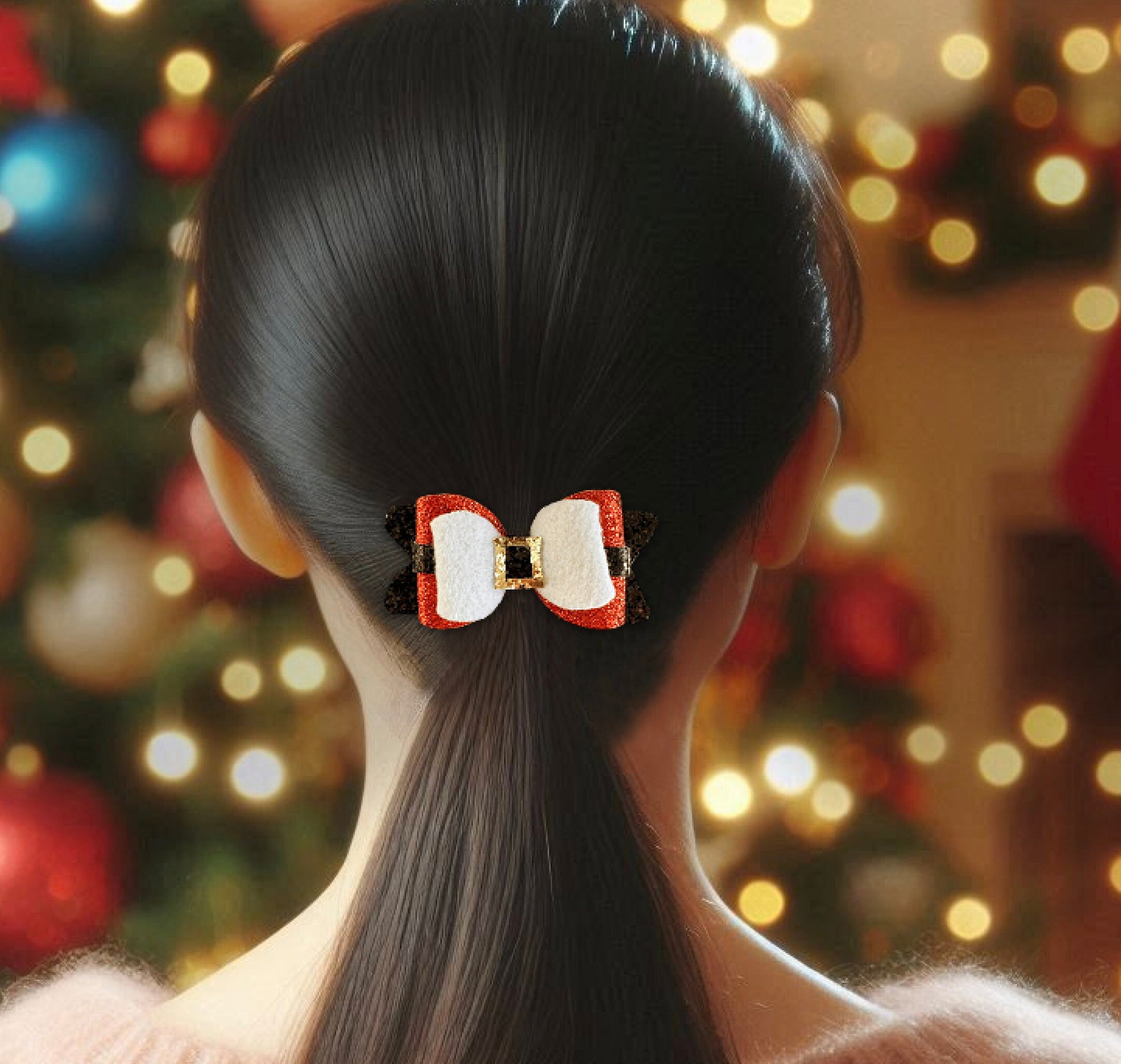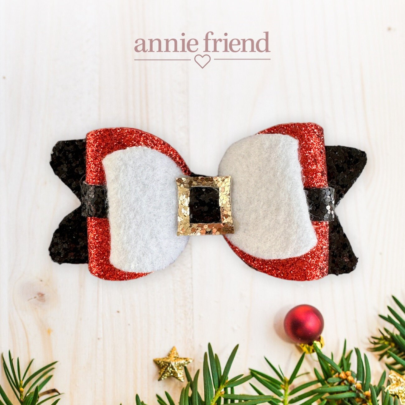 Gorgeous hand made Father Christmas (Santa Claus) hair bow made with glitter fabric and felt.