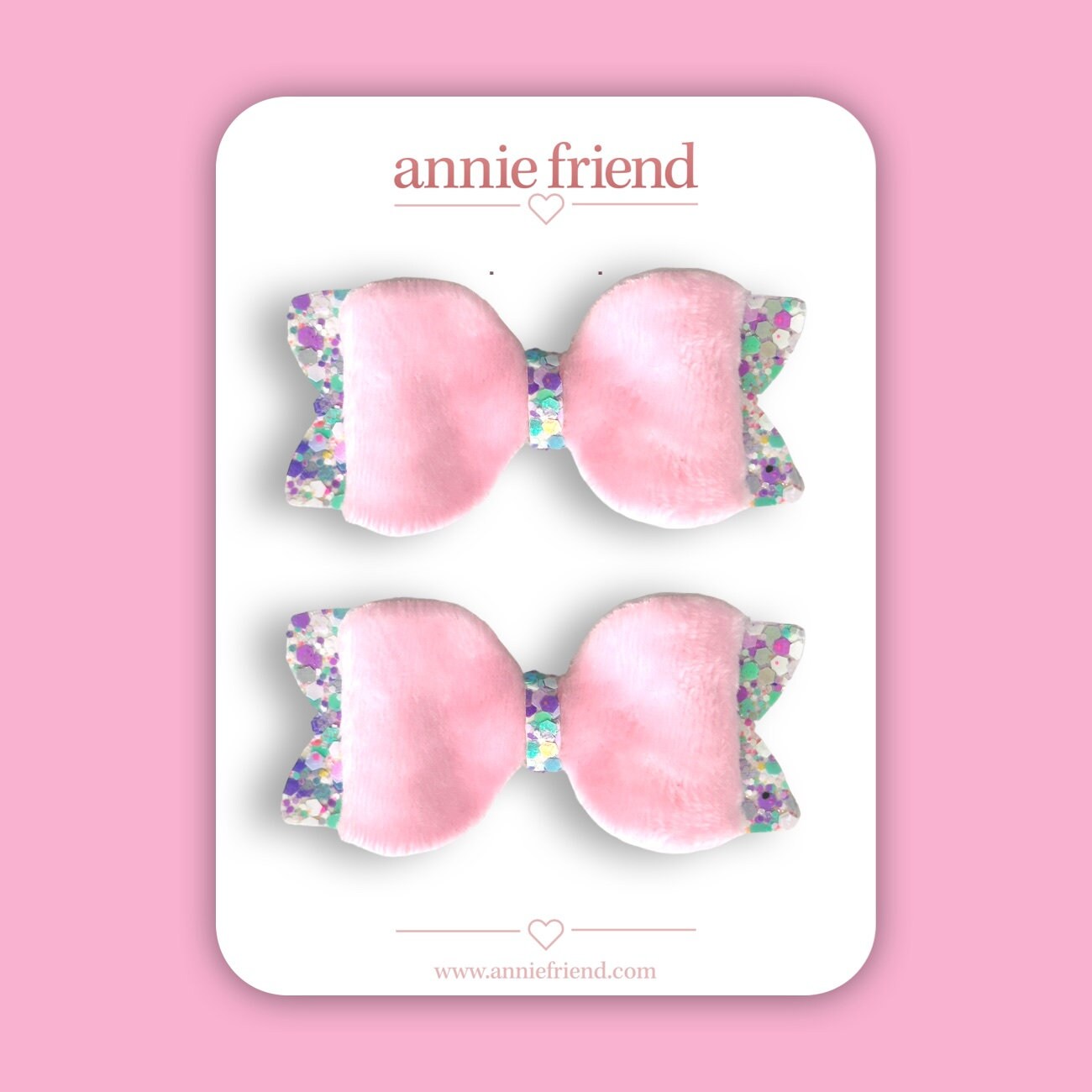 Gorgeous baby pink coloured soft fabric bow with a chunky unicorn colour glitter back layer. Available as 1 bow or 2 bows packs.